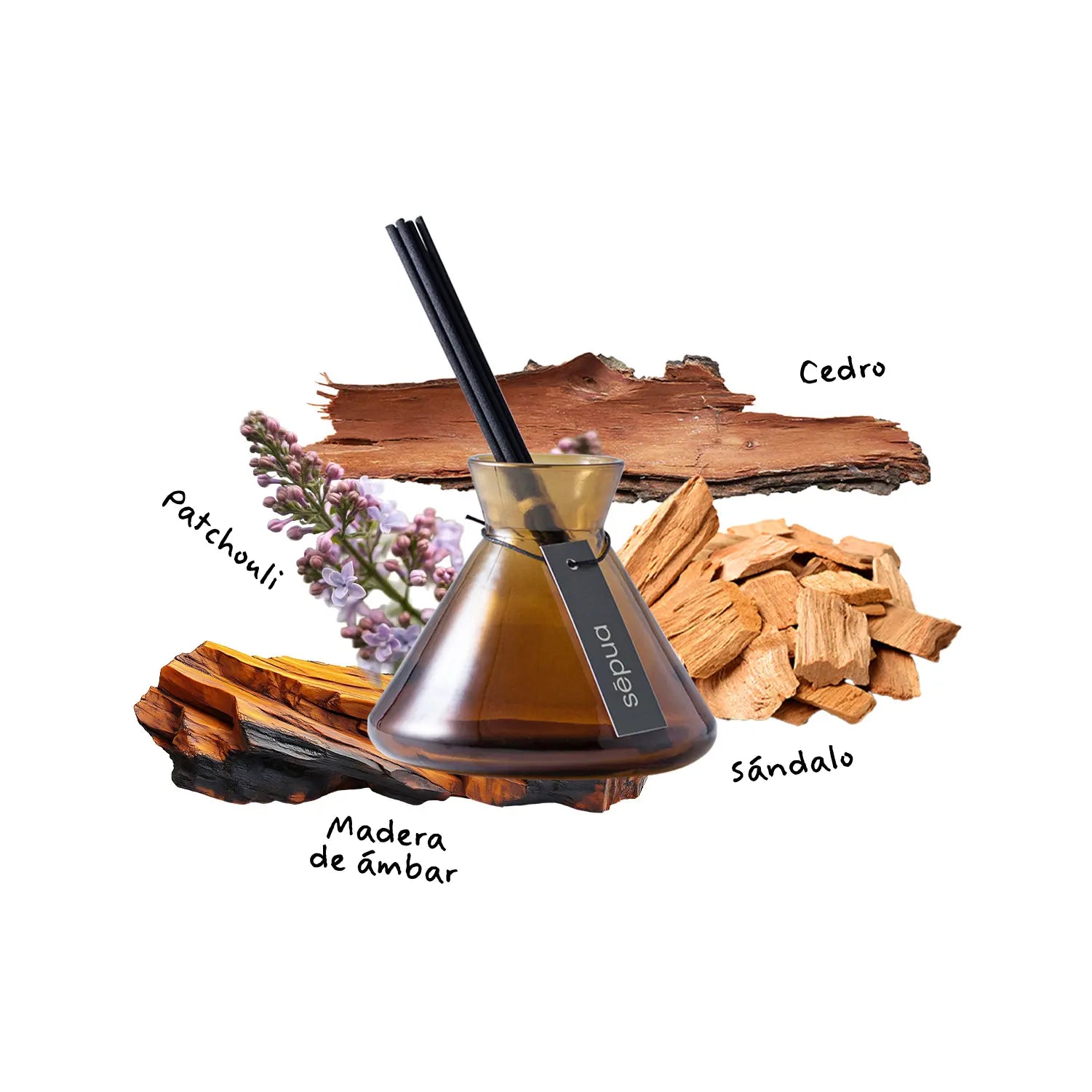 Patchouli, Cedro, Ámbar, Sándalo